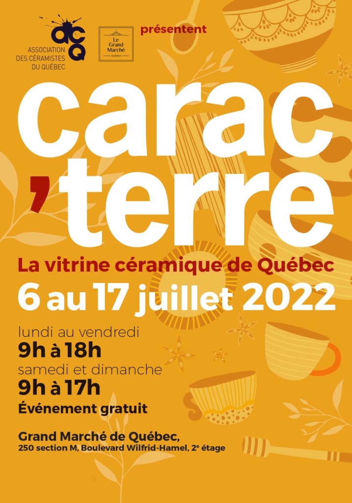Carac’terre : du 6 au 16 juillet, ne manquez pas au marché de Québec l’exposition de Carac’terre réunissant 25 céramistes!