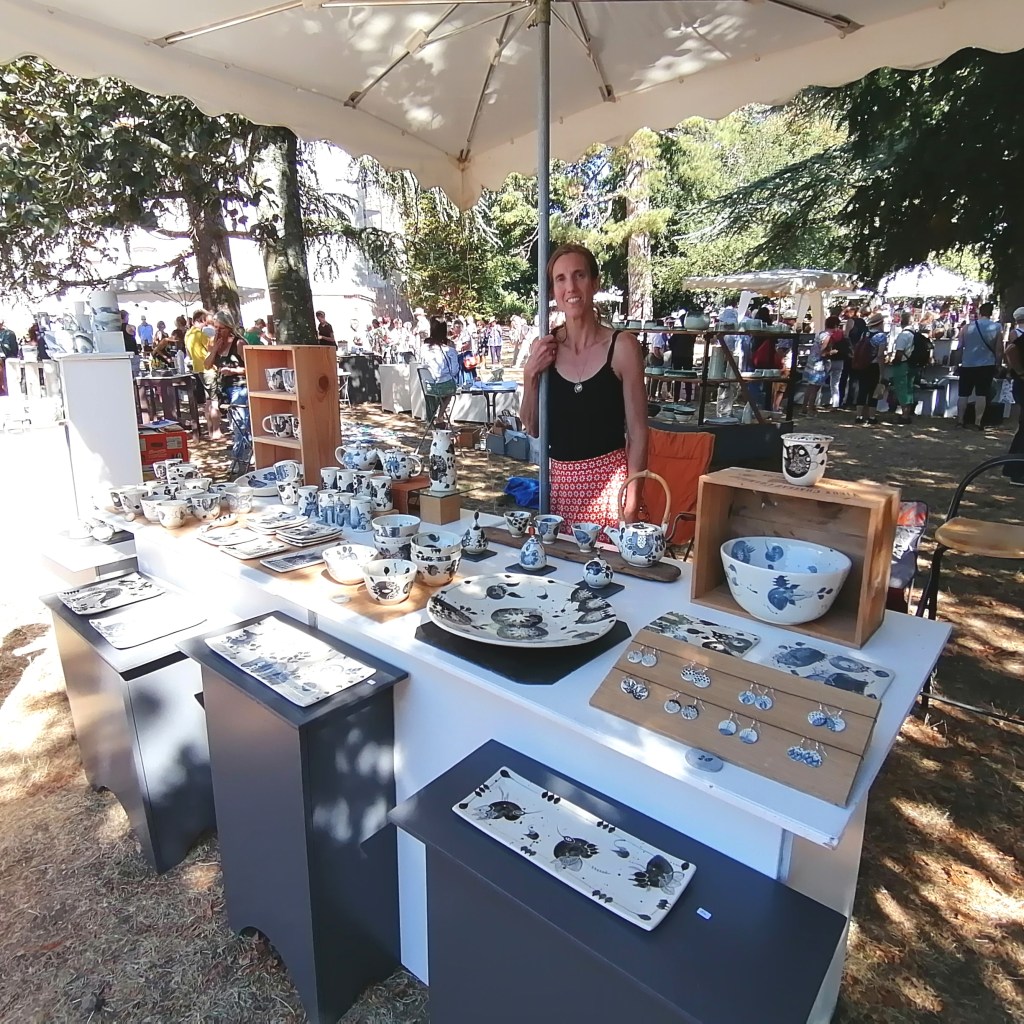 Pour cette 9ieme édition que j’organise nous retournons à nos premières amours sous chapiteau!23 céramistes exposants pendant 3 jours et c’est une chance de les rencontrer, de parler de leur travail! céramistes!