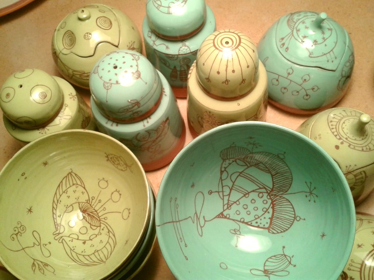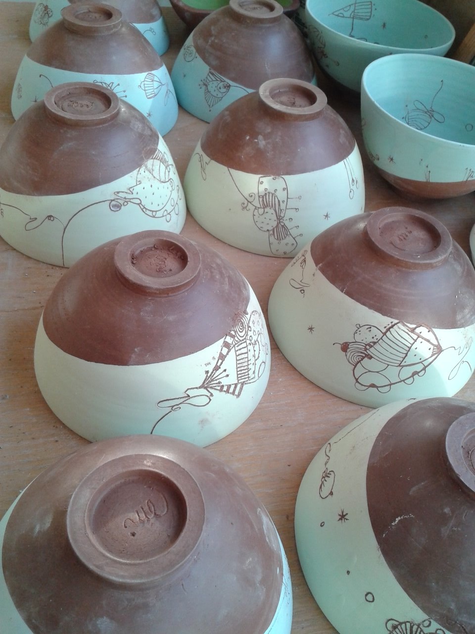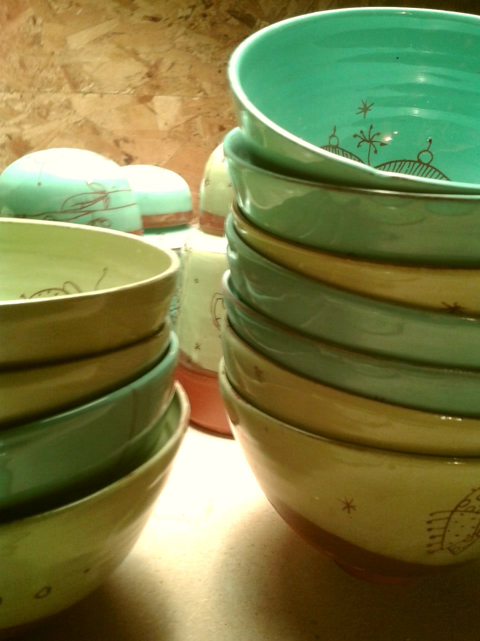 L’atelier fourmille, se remplit de bols, de théières, de boites, de huiliers, de saladiers… je prépare ardemment les expositions de cet été. Alors prenez note..