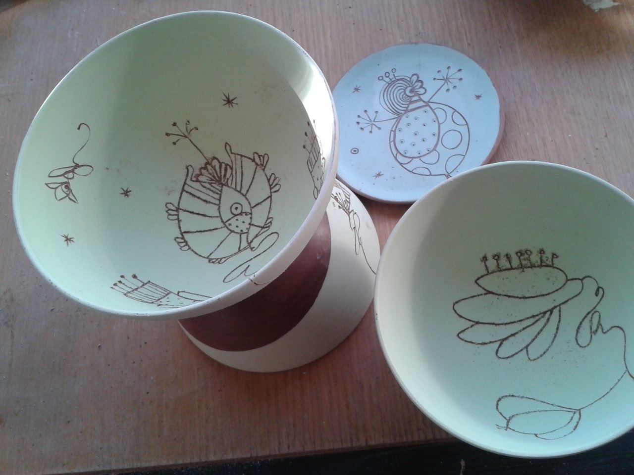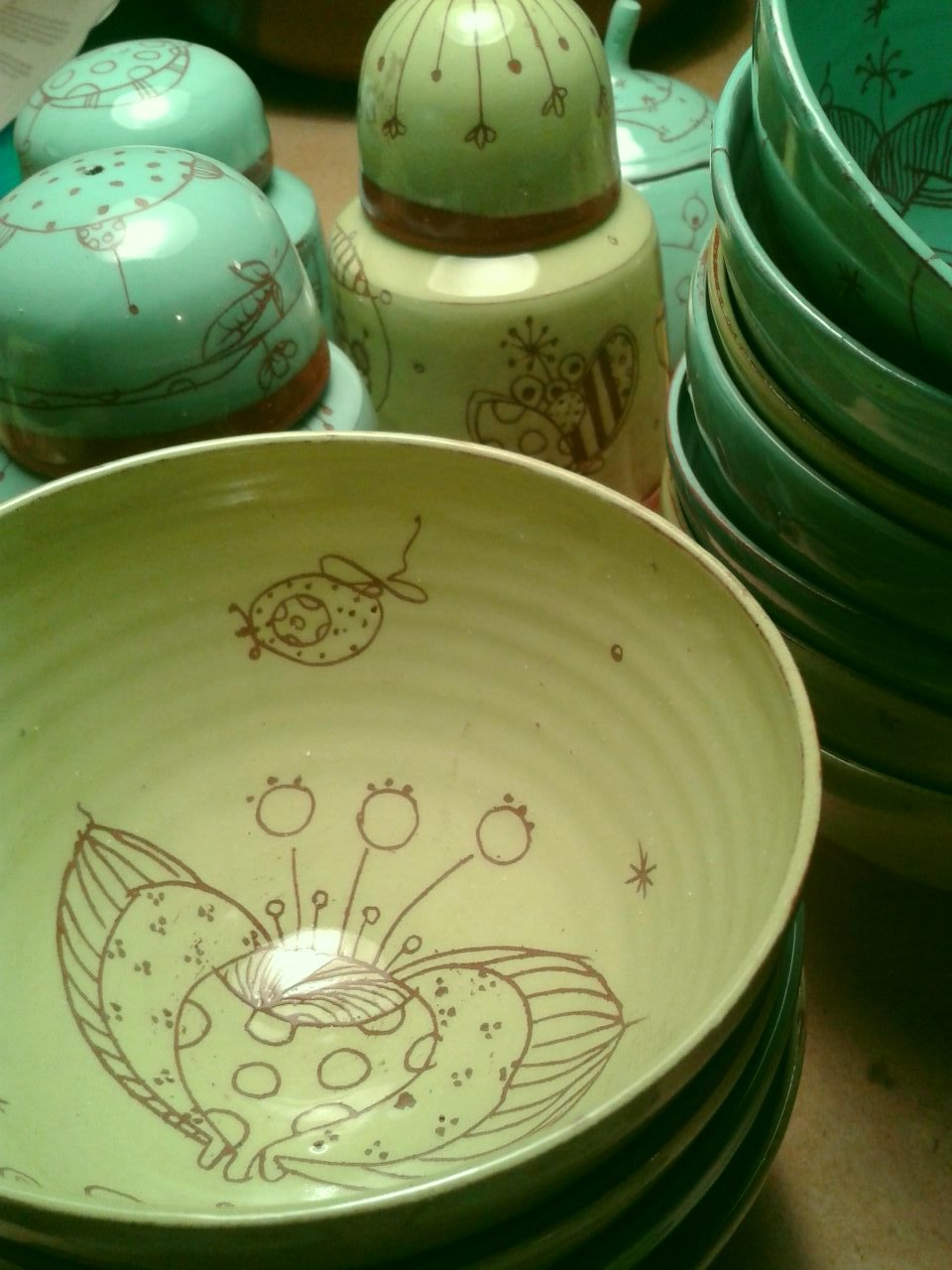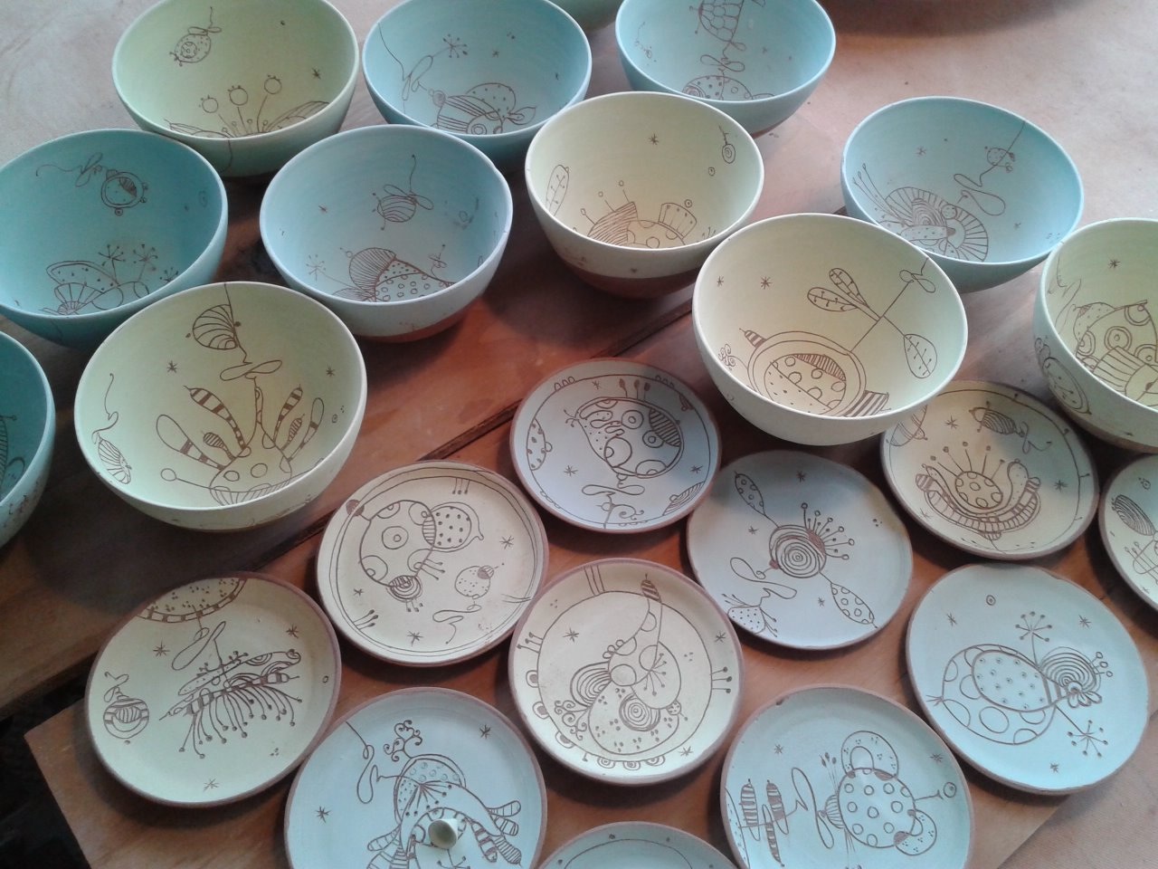 L’atelier fourmille, se remplit de bols, de théières, de boites, de huiliers, de saladiers… je prépare ardemment les expositions de cet été. Alors prenez note..